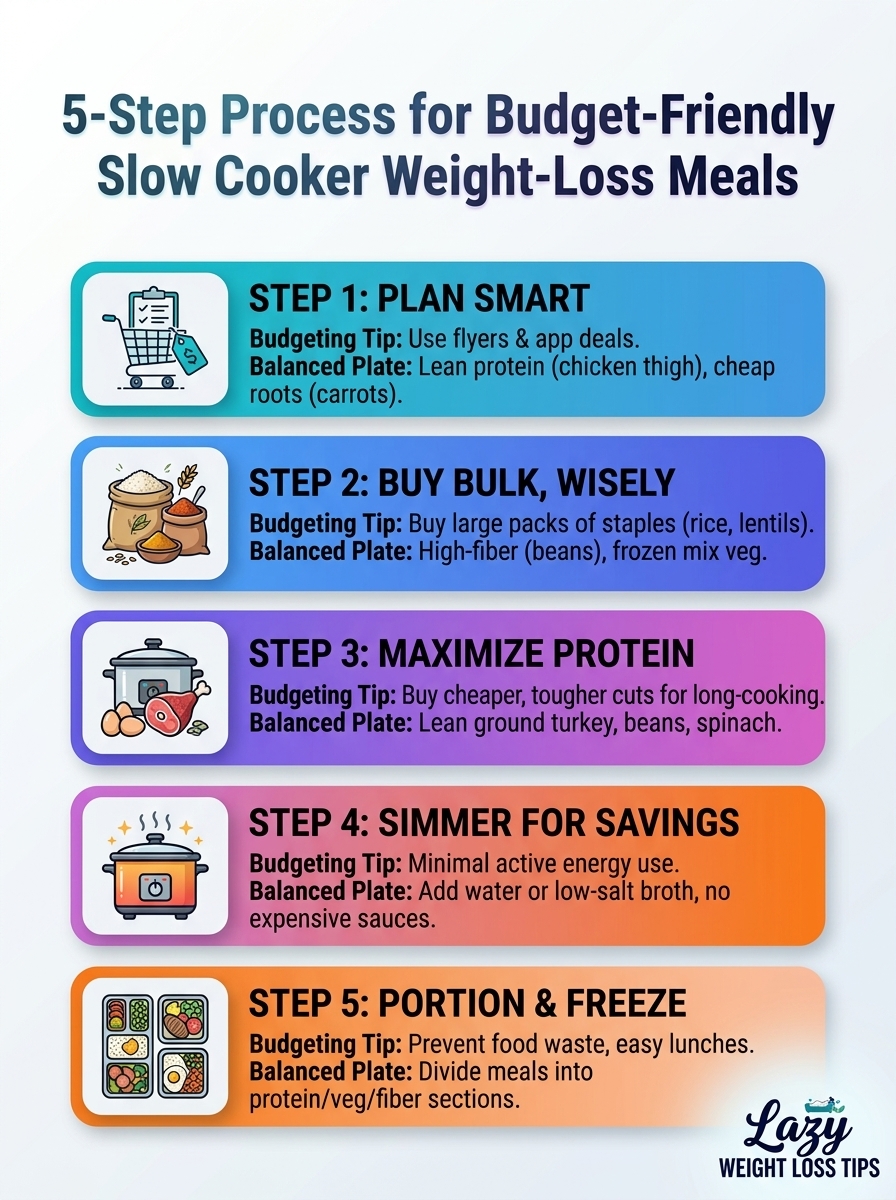 A simple 5-step guide to budget-friendly slow cooker meals that support weight loss. Learn how to plan affordable, tasty recipes that fit a busy lifestyle.