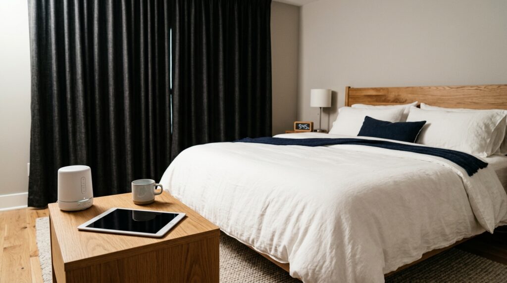 - Make the room dark: Blackout curtains or a sleep mask can dramatically improve sleep depth.