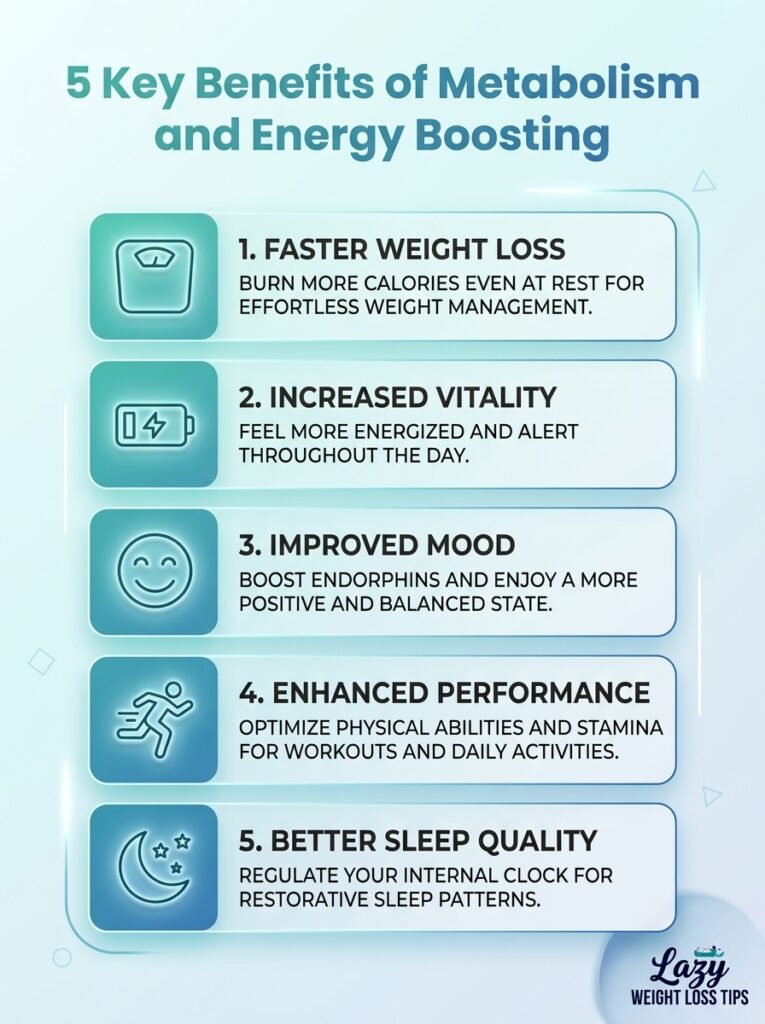 Explore the five key benefits of metabolism and energy boosting. Find practical tips to boost daily energy.