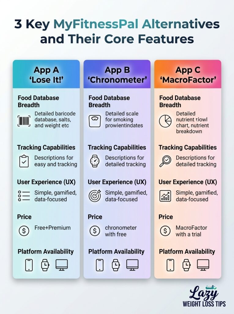 Discover three top MyFitnessPal alternatives. See how their core features compare.